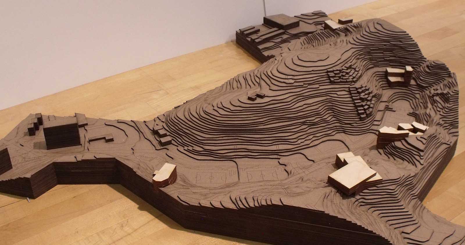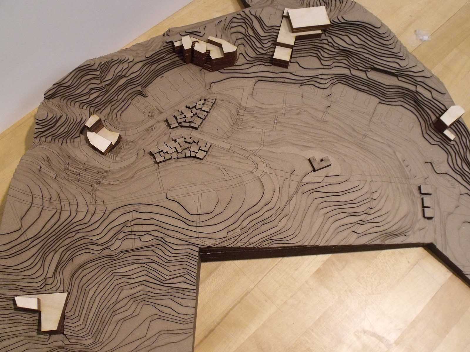 The site is located directly adjacent to an Adventist University, a seminary, and middle class apartments. My proposal focused on the valley left behind by the mining site, with plazas, fields and public buildings forming a public gathering space large enough to serve both future inhabitants and current neighbors. Self-constructed homes are intended to be built up around these public areas, serving as the eyes keeping a lookout over communal areas.