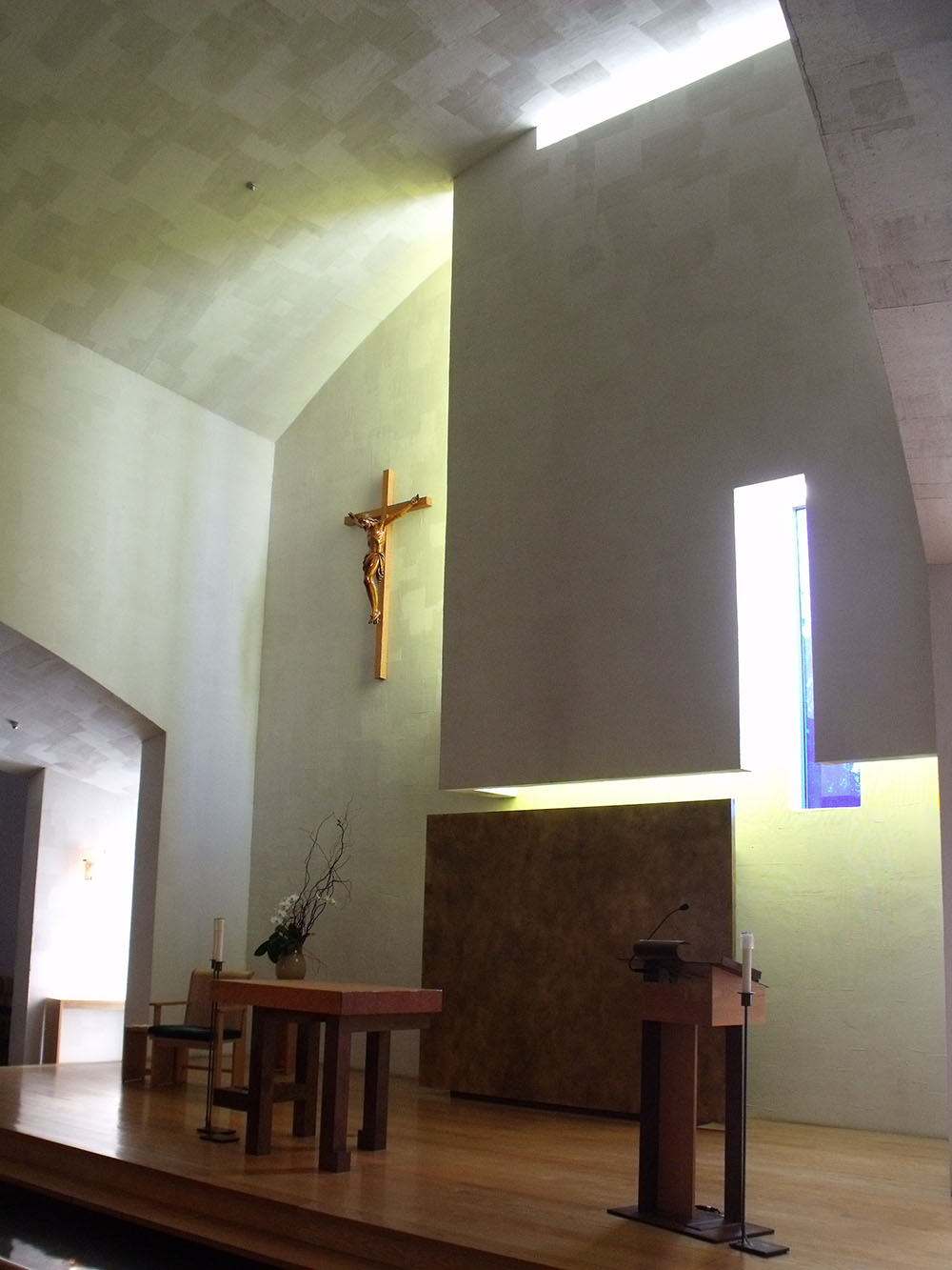 A belated post for yesterday, January 17th, my mother’s birthday, and an opportunity to show photographs from a trip to Seattle and a stop at the Chapel of St. Ignatius at Seattle University. It was designed by Steven Holl Architects and built from 1994-1997. It is an amazing space, curving ceilings and hidden sources of light. From the universities website: