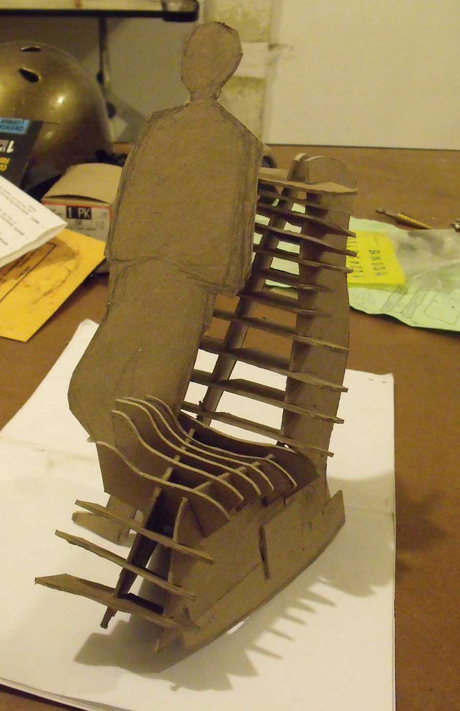 This became the basis for a scale model, constructed with 1/16″ chipboard in lieu of 1/2″ plywood.