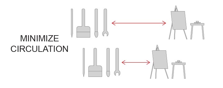 Given that these spaces thrive on interaction between different disciplines, a strategy that I identified as appropriate involved minimizing circulation patterns for specific types of users, but increasing the intersection of circulation paths between different types of users.