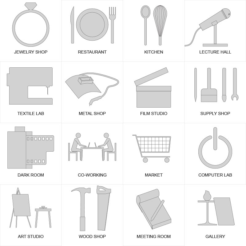 In the case of the Co-Lab/Co-working prompt discussed yesterday and the day before, diagramming became a necessary means of understanding an incredibly complex program and definition of the building. Based on some of the examples of co-labs discussed yesterday, I identified a list of types of artists and the types of spaces in which each artist works.