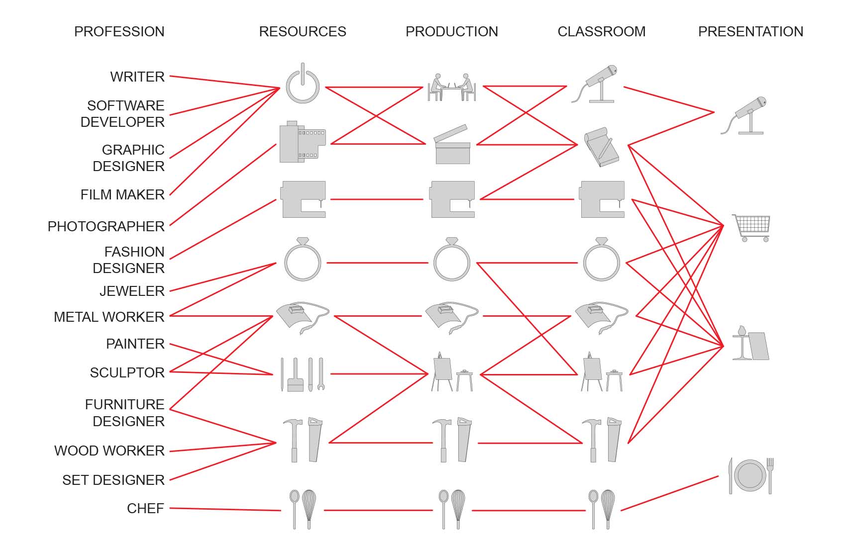 “What is a diagram?” is a deceptively difficult question to answer in a satisfying way. Diagrams are abstract, not necessarily representational. They should suggest potential, identify relationships, and be able to generate and stimulate new ideas. A diagram is an incomplete reduction of thoughts and ideas which allow for new connections and relationships to be found within its components.