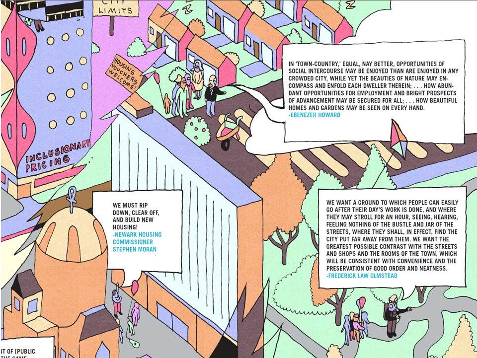 Interboro are a more interesting example, fully investigating the comic book as a means of conveying narrative. It firmly places idea and social context front and center, and also seems to influence their design process.