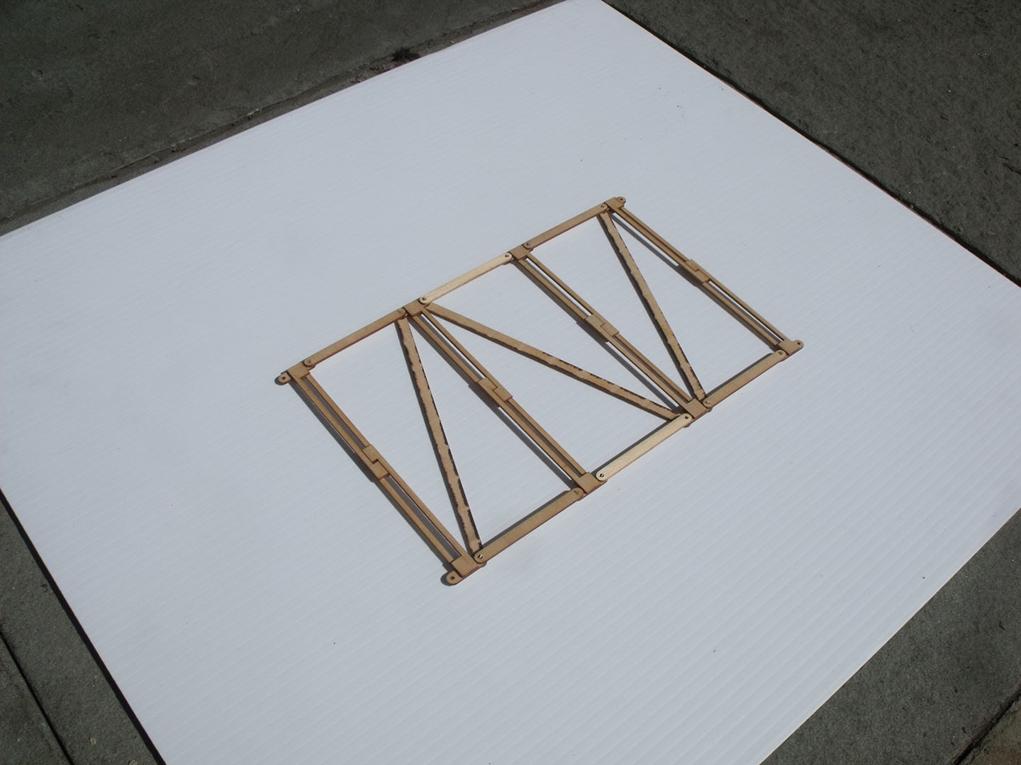 A brief recap. The past few posts have been a review of work completed as part of a class called Deployable Structures, taught at PennDesign by Mohamad Al Khayer. A few weeks were spent on folded paper modeling (origami, as seen on this pinterest page). Mohamad also review some of the ideas of D’Arcy Thompson’s On Growth and Form, Platonic and Archimedean solids, and some more recent developments like the ‘Calatrava Truss’. Steve and I adapted our new ‘expansion strut’ to the Calatrava truss.