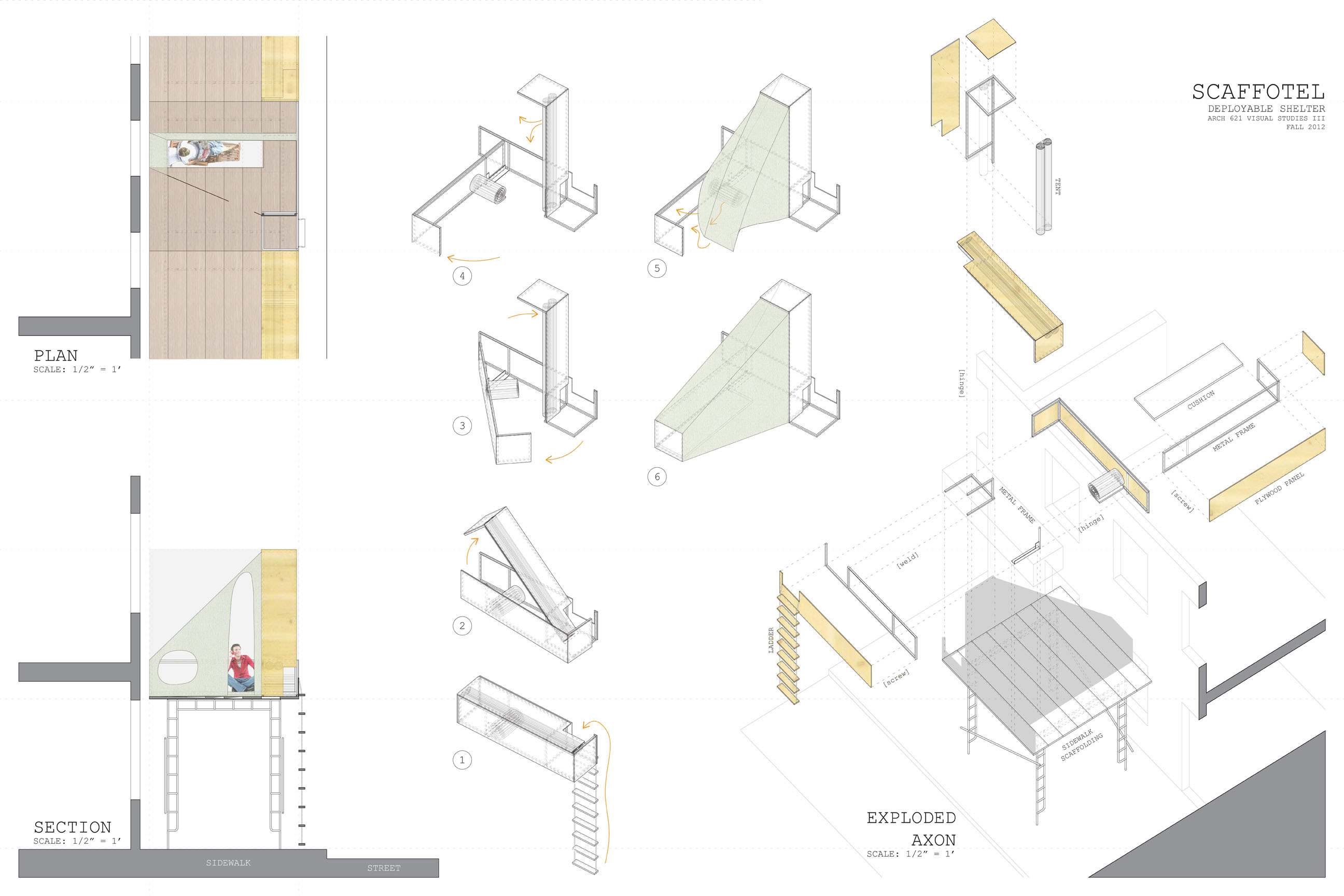 This project was a one week charrette from the fall of 2012 (the transitional housing studio) looking at minimal urban shelters.