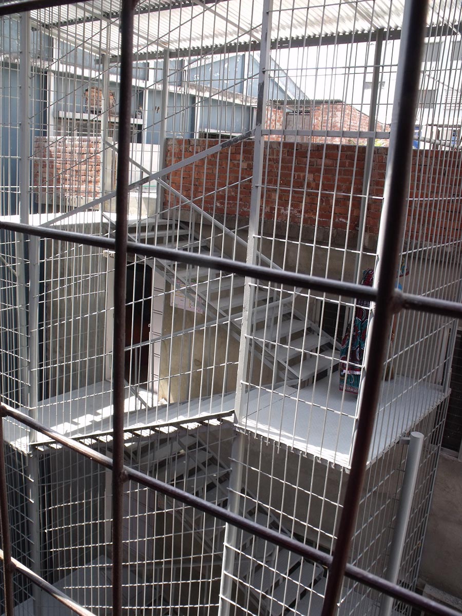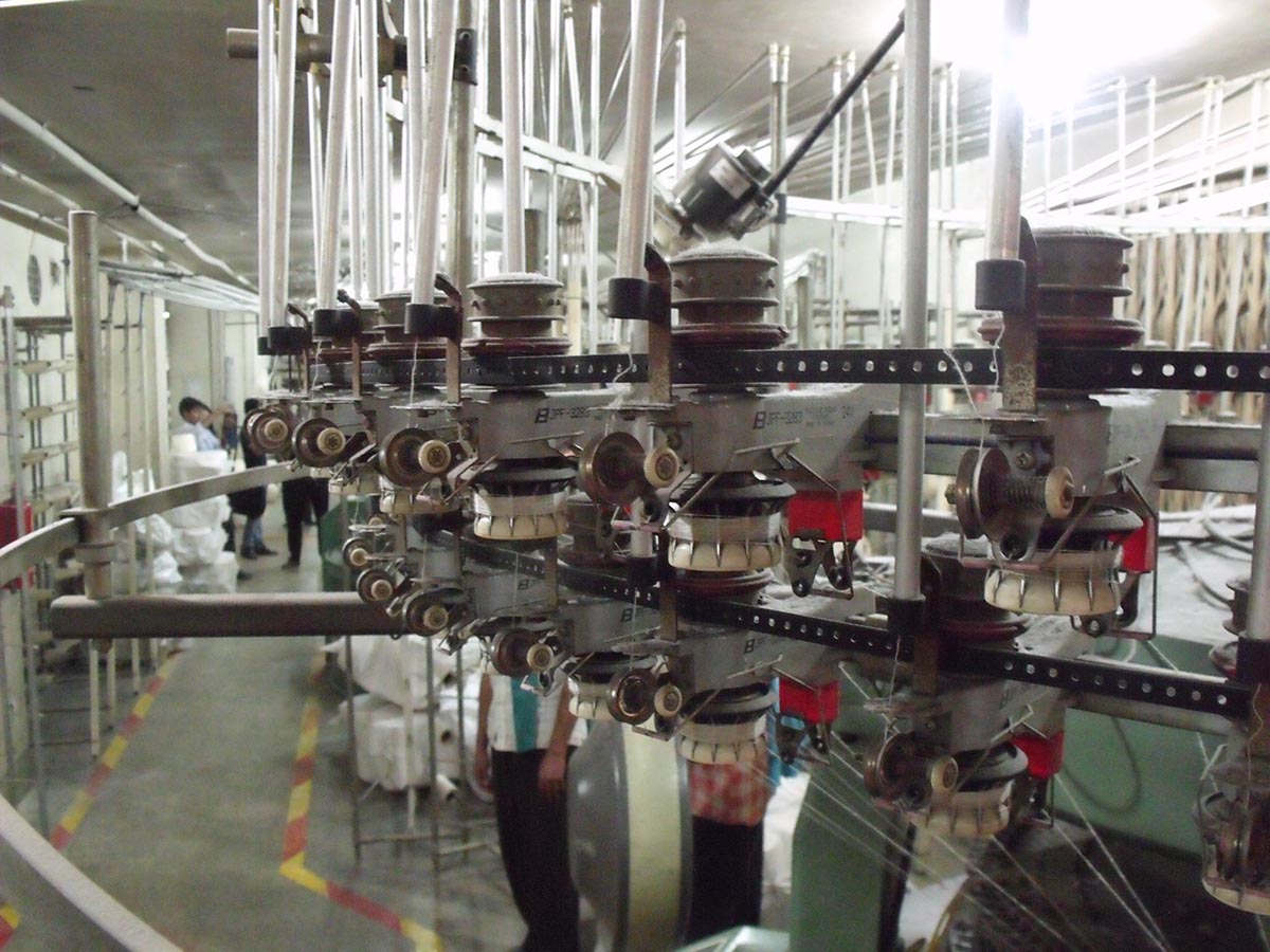 Yesterday we visited a garment factory shipping a relatively small batch of clothes to a boutique Italian clothing firm. About a year ago a garment factory collapsed outside of Dhaka near Savar, west of the city. That event marked a surge in interest on the part of the international community and western consumers as to the supply chain and conditions of workers for their cheaply imported clothing. Our visit coincided with inspections given by officials from the EU. Both the EU and the US have preferred trading status with Bangladesh, and the Bangladesh government prioritizes exports as a driver of their economy. The factory we visited produced t-shirts and undershirts, spooling thread into cloth before sending it off site to get dyed, and bringing it back for cutting, sewing and packaging. Company offices were onsite, and a small daycare could be found on the second floor. The building was seven or eight stories tall and had an exterior emergency exit (which might pass local code but wouldn’t in the US. Safety and working conditions were on the minds of everyone, students, management, probably the workers too.