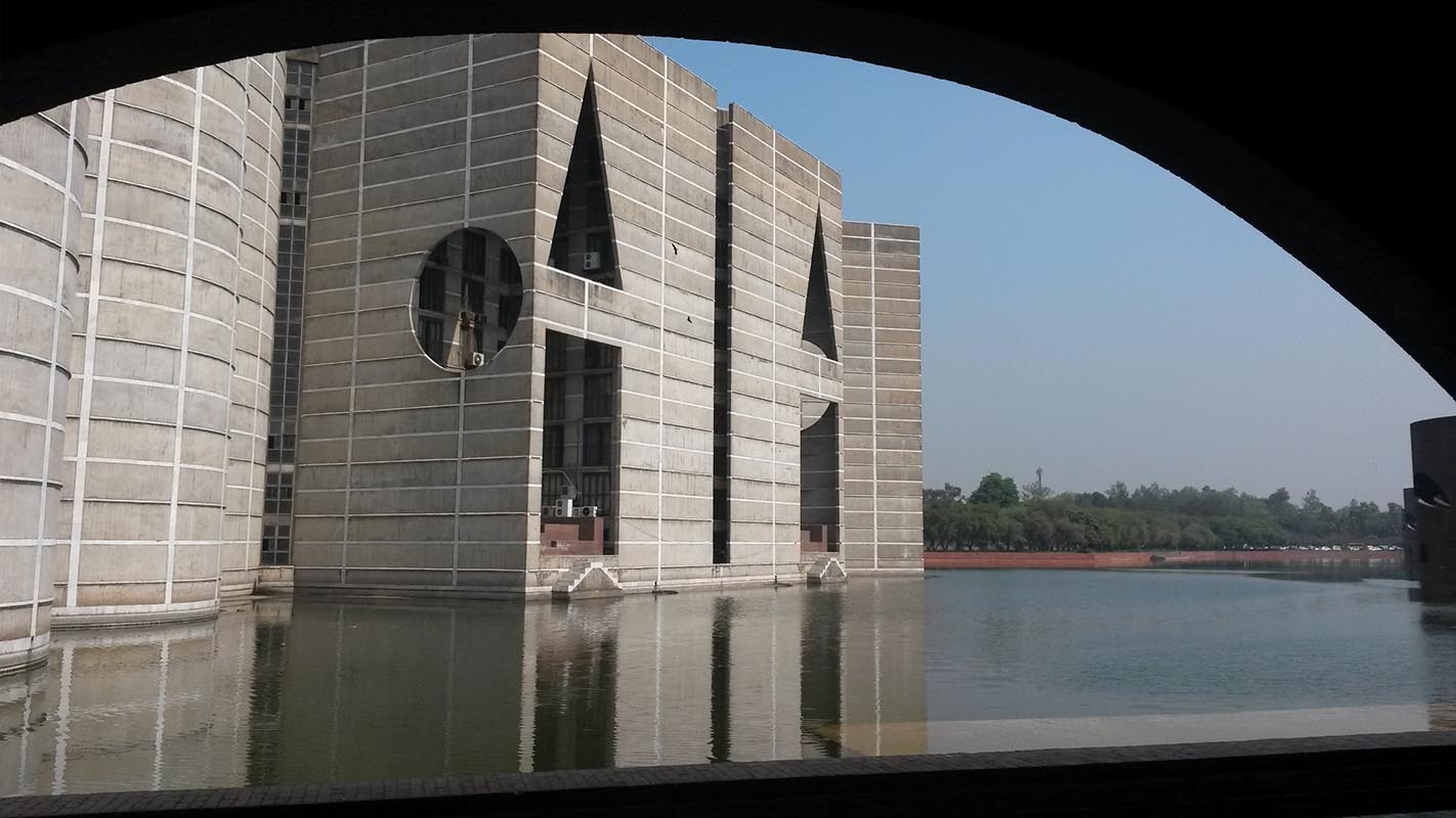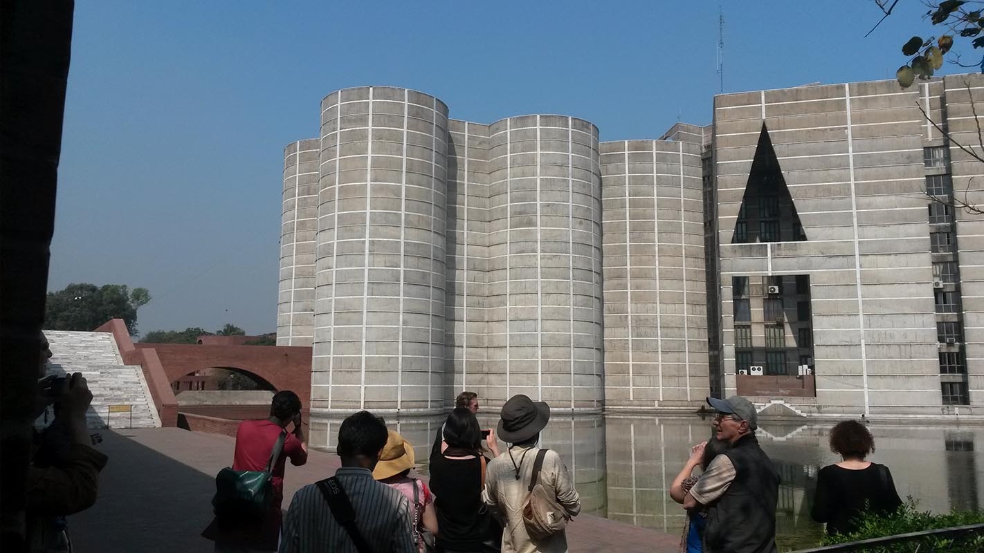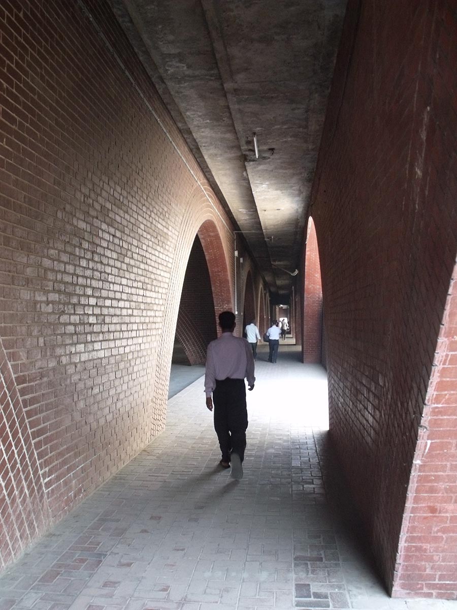We had the opportunity to take a tour of the Bangladesh Parliament building yesterday, but could only take photos from outside. While we had a good hour and a half to two hours inside, setting a leisurely pace compared with passed visits, it felt like a very rushed visit. I could have sketched inside for hours. The shapes are simple, the material is borderline crude, but the results are powerful. Light renders all shapes and materials a bit soft, and the mid day prayer call echoed beautifully off of all the concrete surfaces. Every view and glance was rewarded with small epiphanies as alignments and axies were revealed. The professors on the trip were visiting for their third or fourth time, and said it took as many visits to really get a sense of the place. It is a building that rewards attention, inquisition, and repeat visits.