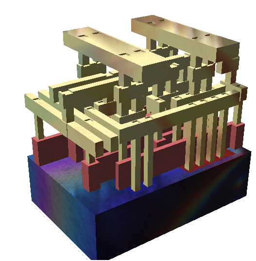 Another reoccurring interest has been exploring high density development modeled after the organization of microchips. “As transistors get smaller, keeping them cool and error-free becomes more difficult.” That quote, from this article, made me think that the structures and organization patterns of micro chips could serve as the model for architectural massing models. ‘Microchip urbanism’ would have been an exercise of analogy, as buildings would operate like transistors, packed as close together as possible while allowing light and air to circulate through. (Also, I later found out a scene of the film Koyaanisqatsi compared the imagery of cities and microchips.)