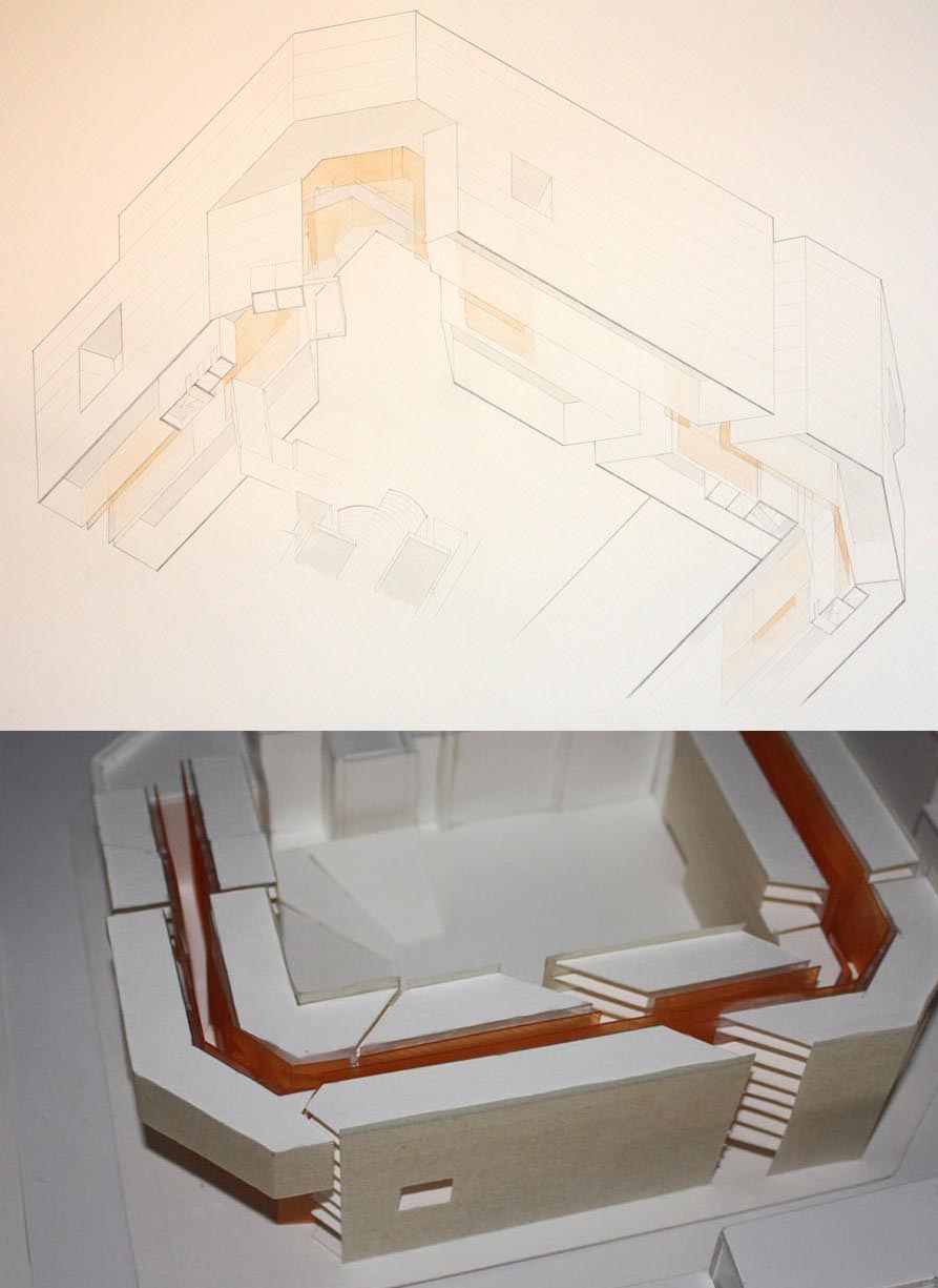 A brief look at a continued idea. I had the privilege of giving a brief presentation about my thoughts on void city on Tuesday. Here are a few photos (some repeats) of Ghardaia, with a sketch of the public void. One quick reference to make is that of Auguste Choisy, known for his axonometric views taken from the ground up. The effect is a bit alienating in that it implies looking through the ground plane, yet humanizing in that it looks up at the building the same way a person inhabiting the space would.