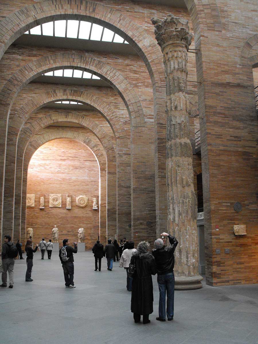 Moneo completed Spain’s National Museum of Roman Art in 1985 in Merida, Spain. The main gallery space sits one floor above the basement, which is an archaeological site. (first two images from http://www.jstor.org/stable/3171055)