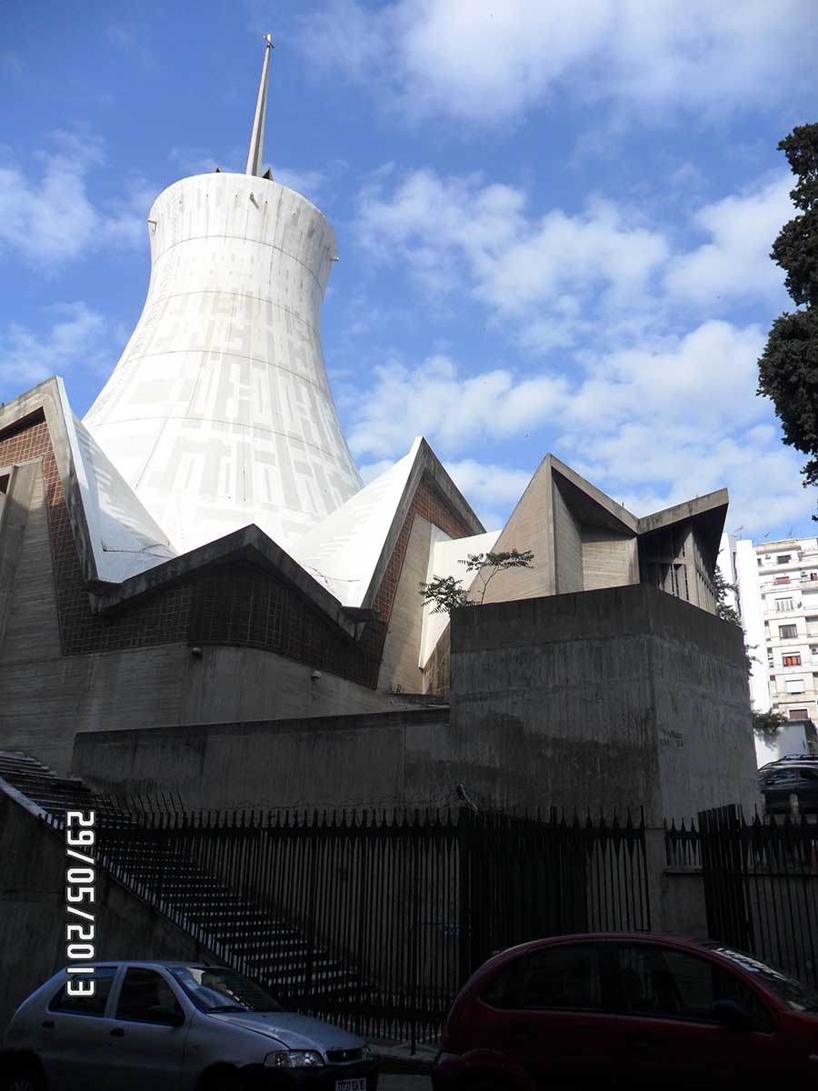 A few photos from a trip last year to Algeria, today of the Cathedrale du Sacre-Coeur d’Alger. It was planned and designed before Algeria gained independence from France, but was completed after to a country whose Catholic inhabitants were part of one of the greatest mass exoduses in human history. Notice in the first photograph that a petrol station has opened up next door. The church is still open, serving as the head of the Archdioceses of Algiers, and holds a daily mass in a small chapel in the basement.