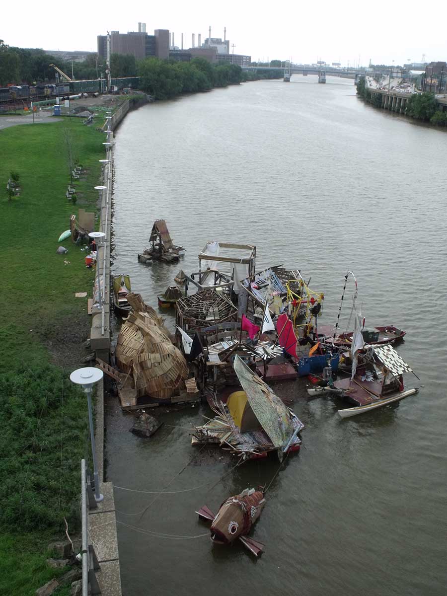 During late August 2011 there was a small band of barges along the banks of the Schuylkill River in Philadelphia. They were the Miss Rockaway Armada, hosting a festival along the river. I missed the festival but enjoyed walking past the boats every chance I could. The group has done other flotillas, but their website for the Philly trip has since been taken down.