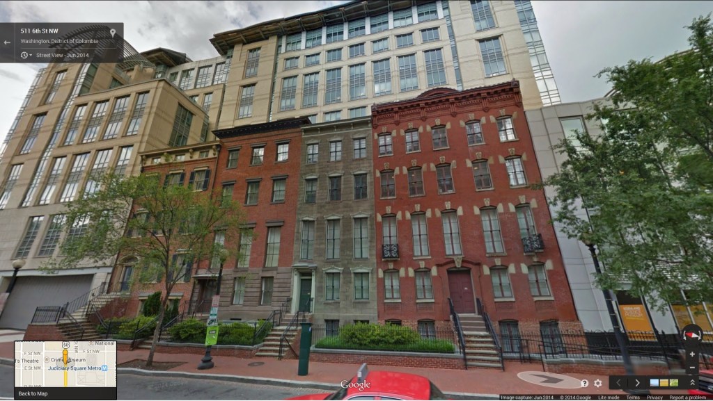 11/14/2014 update: the National Academy of Science headquarters in Washington DC is a comical compromise between keeping existing/historic buildings or demolishing and building new. See below for a screenshot of Google streetview showing four rowhouses with no signs of life and a hulking if nondescript office building looming behind it. On each of the four rowhouse front doors is a plaque indicating that the front door of the National Academy of Science is around the corner.