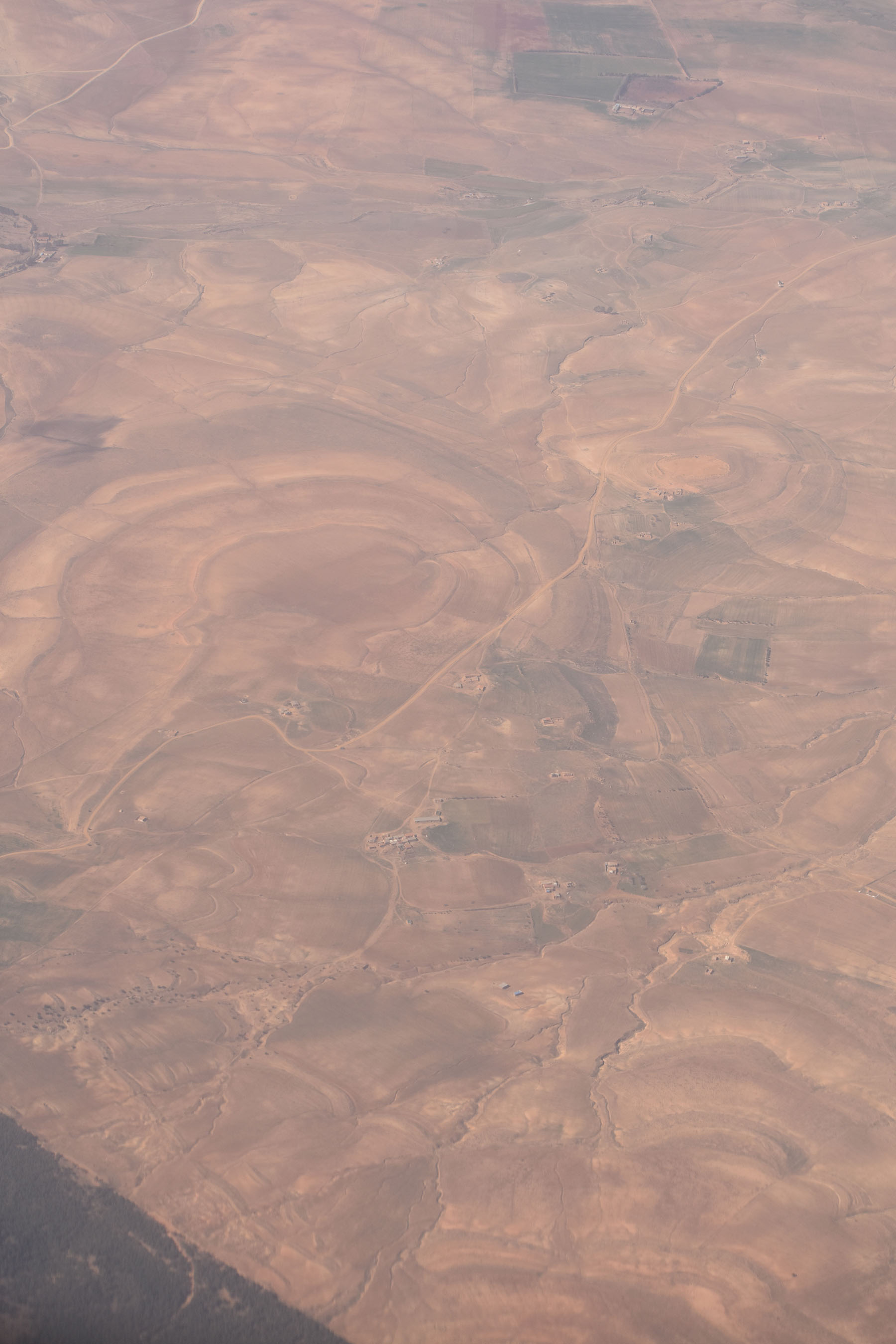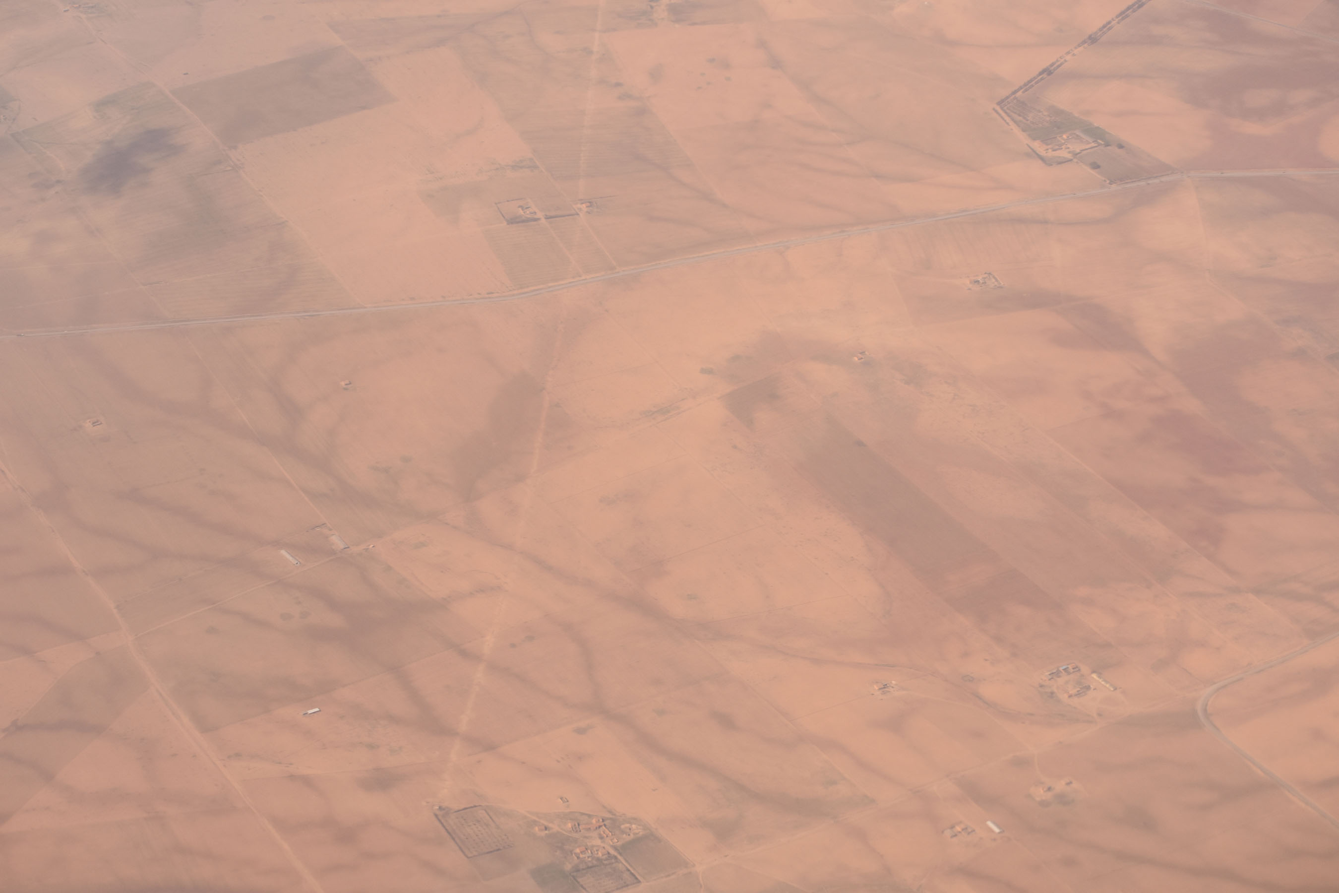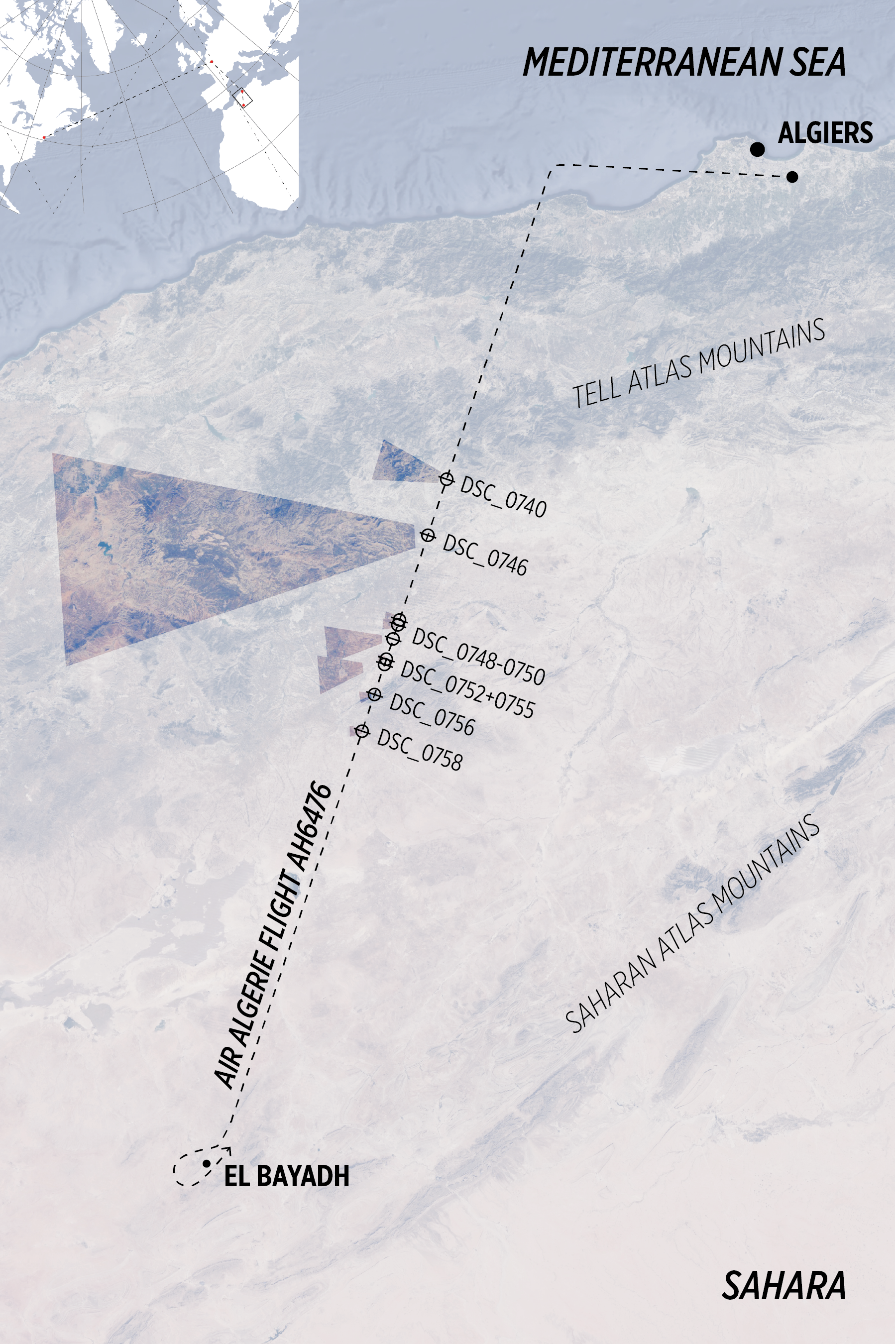 On the Air Algerie flight, the clouds parted in time to see the start of the plateau between the Tell and Saharan Atlas mountain ranges. Both the satellite imagery and the photographs taken from the plane ride show the beige hues of dry plains scarred by the vascular patterns of wadis and dry creek beds – tributaries possibly still wet from recent rains.