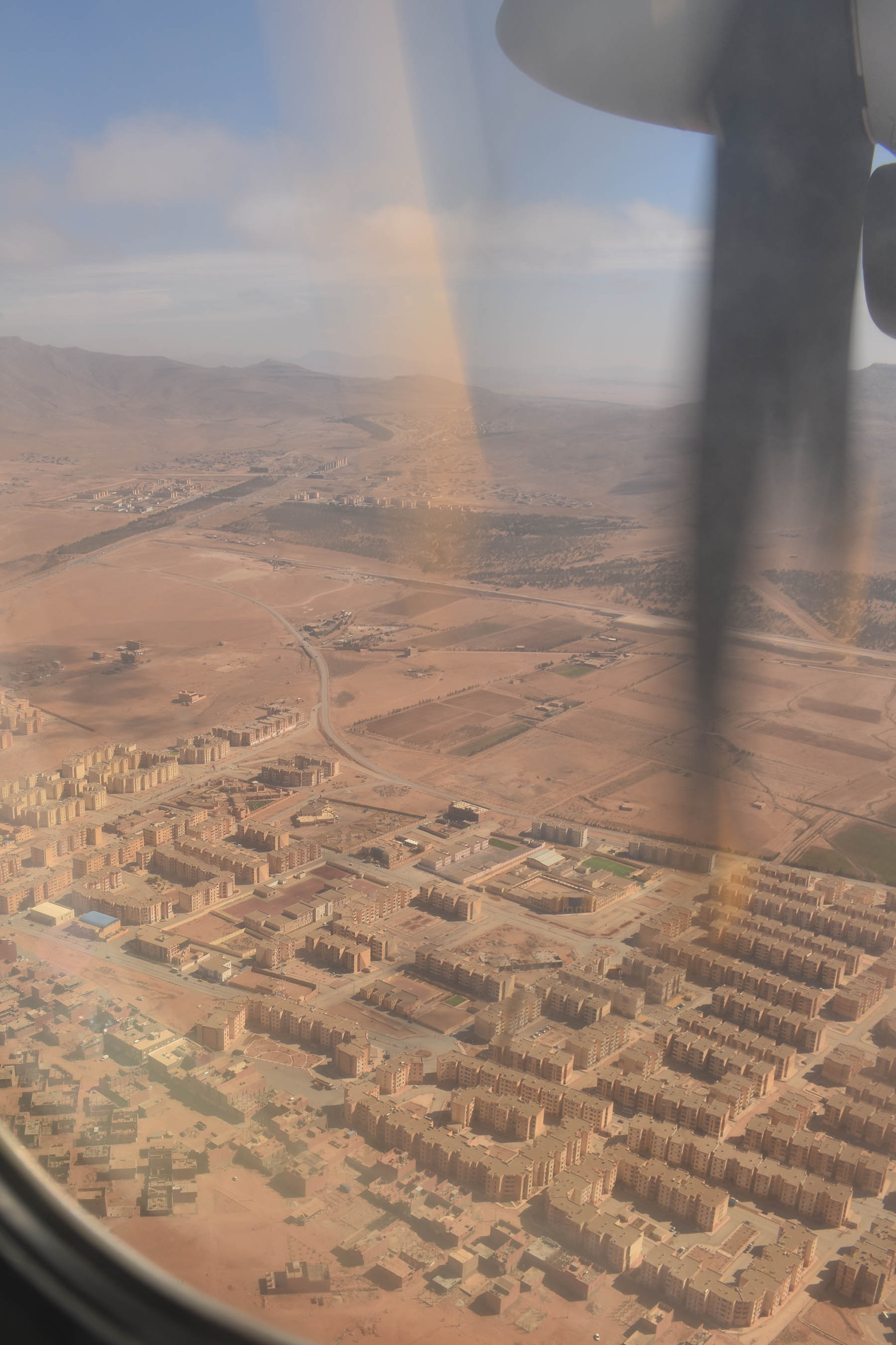 The forested areas around El Bayadh are visible in most of the images below, all of which were taken on the final descent of flight AH6476. These images are keyed in relation to the flight path on the map above.