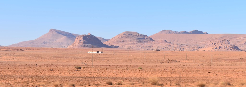 These photographs from Algeria show the geography and geology of the Saharan Atlas mountains between El Bayadh and Brezina, a small oasis marking the start of the desert. All photos taken by the author, from the front seat of a speeding minivan.