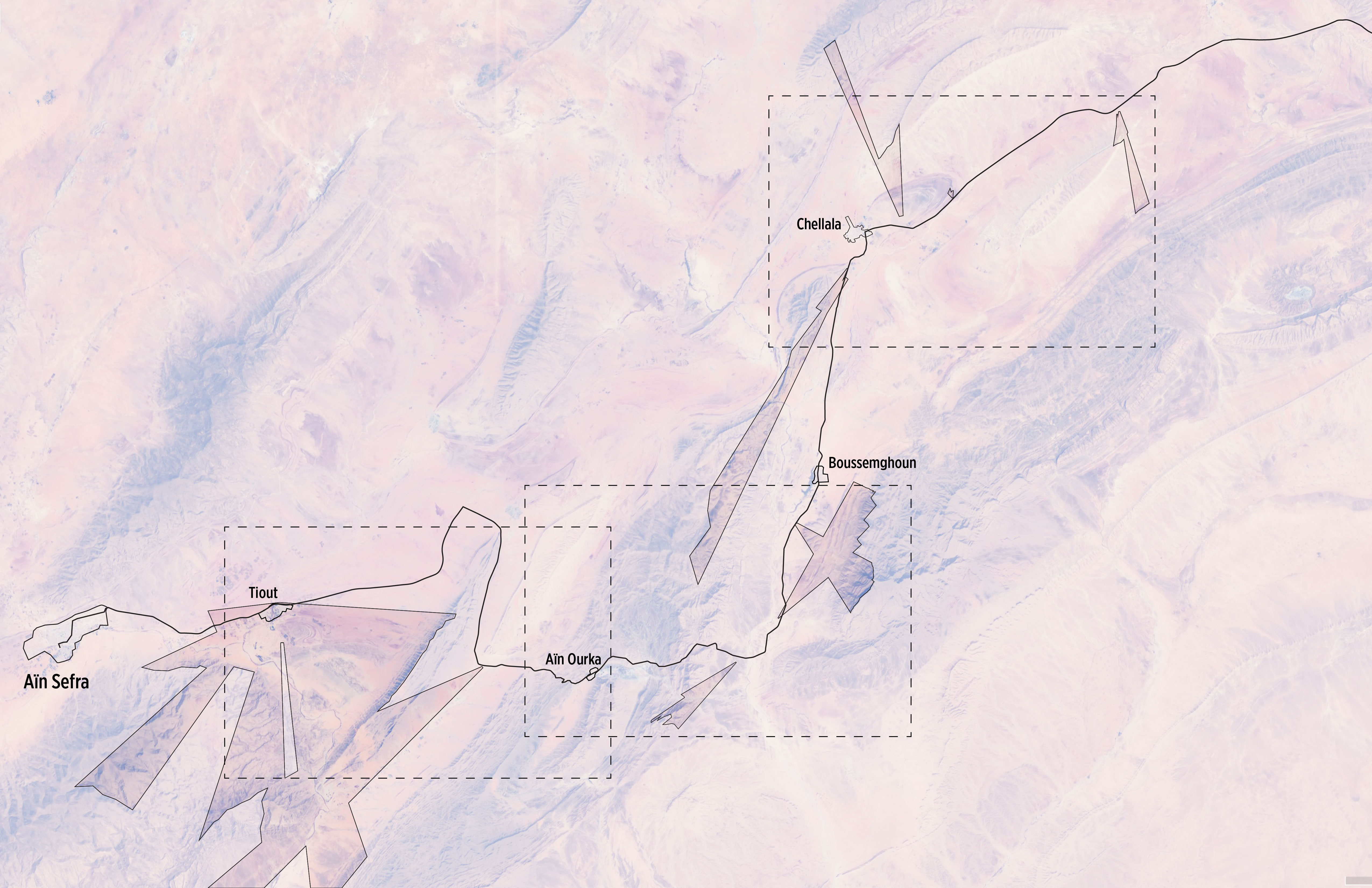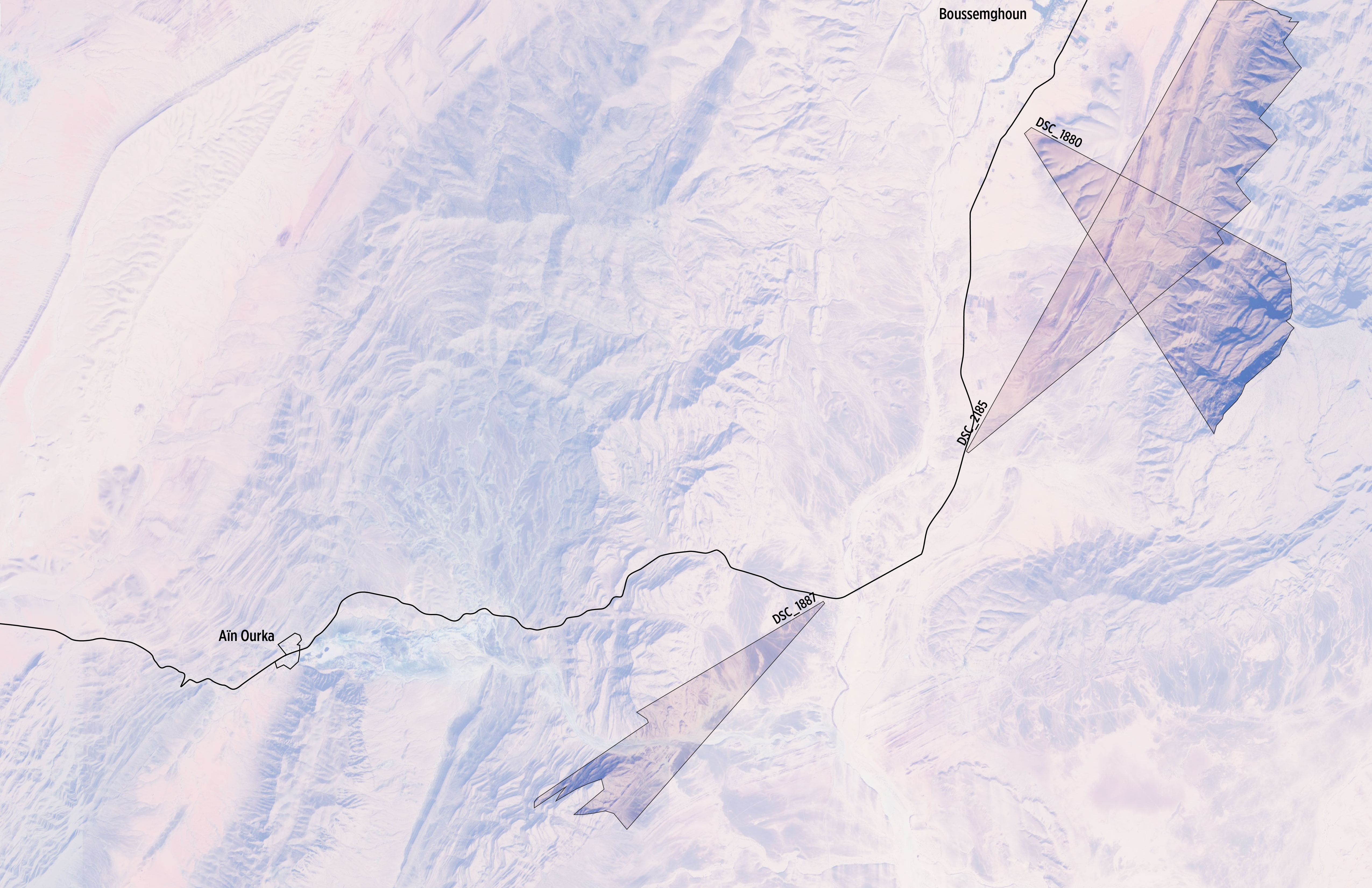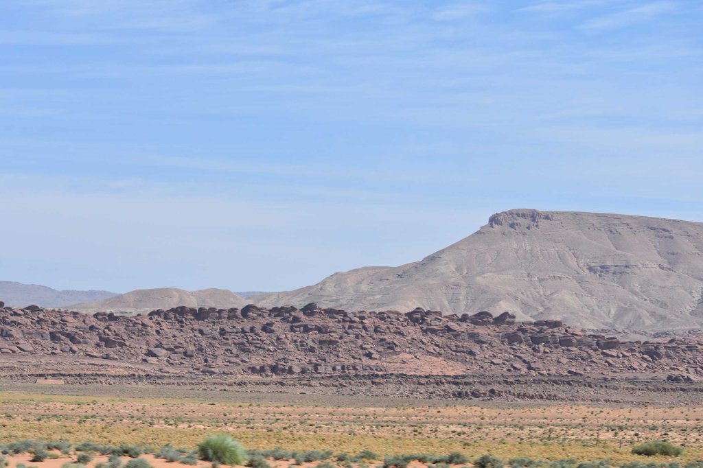 The trip to Aïn Sefra took a few hours and included a tour of Boussemghoun and a scenic detour through Aïn Oukra (whose photos are to be the subject of a subsequent post). Just north of Chellala we stopped to admire a painted rock formation called ‘Anaconda’ (see below), and after a short lunch in Tiout we saw rock art carvings on a cliff overlooking the town.