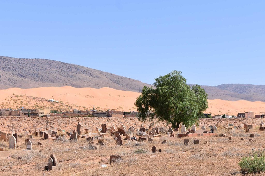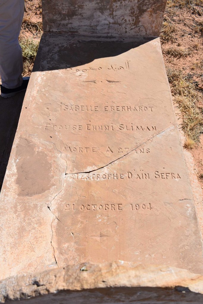 In 2019 I went on a pilgrimage of sorts from El Bayadh to visit Aïn Sefra in western Algeria. The day trip was arranged to offer detours through the Ksour Mountains, rock art carvings, and while in Aïn Sefra, visit the grave site of Isabelle Eberhardt. Eberhardt was a Swiss explorer and writer who moved to Algeria as a twenty year old in 1897. From Wikipedia: “She dressed as a man and converted to Islam, eventually adopting the name Si Mahmoud Saadi.” She survived an assassination attempt and exile, only to be felled by a flash flood in Aïn Sefra in 1904. She is buried in a man’s grave (two parallel stones at the head and foot; women’s graves have a perpendicular foot stone) indicating ‘Sidi Mahmoud’ in Arabic script and ‘Isabelle Eberhardt’ in Latin characters. For further reading, see Reinventing Isabelle Eberhardt by Verna Foster.