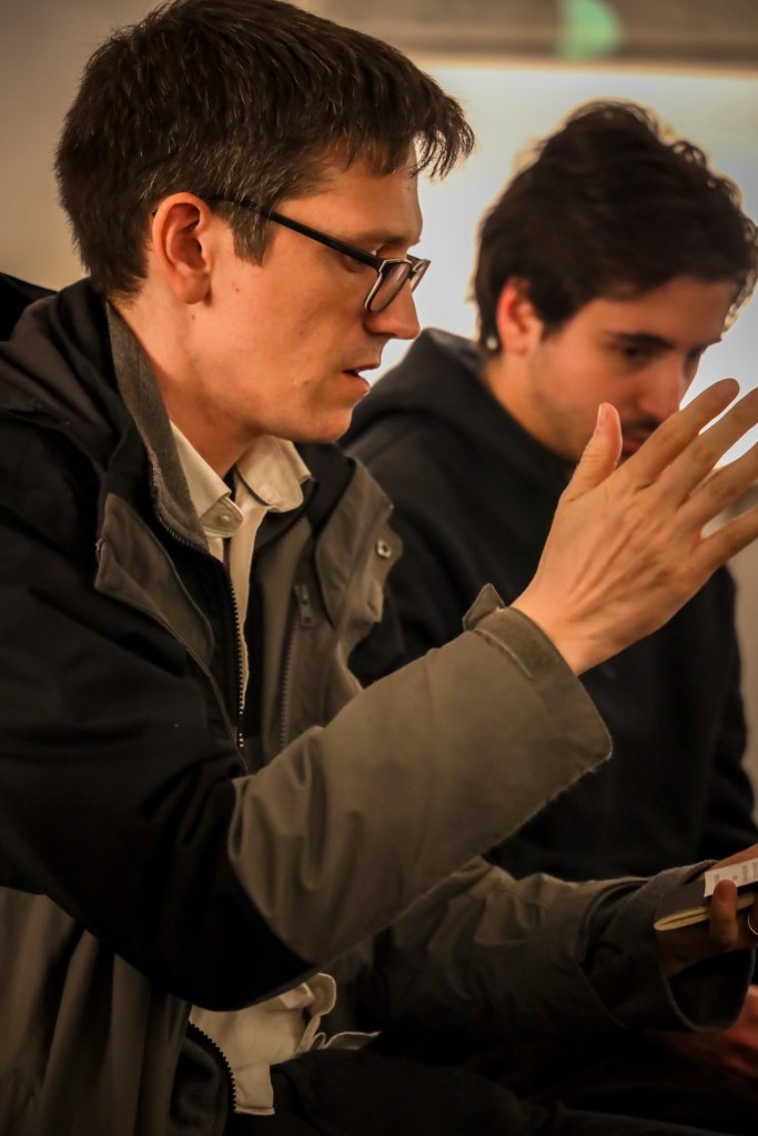 In groups of four or five each read out a line, one at a time, in a circle. When completed, the twenty or so shared reflections on the exercise and experience.